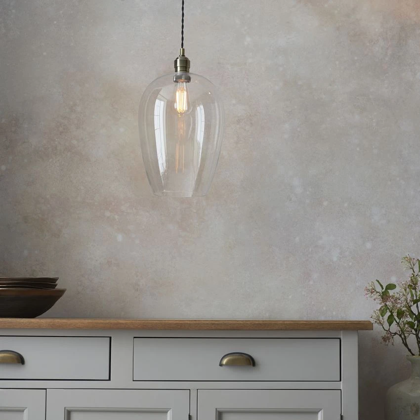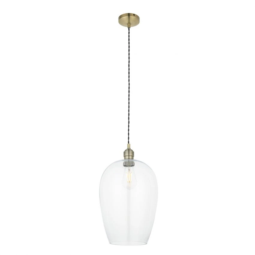 Hexton Large Glass Pendant In Antique Brass