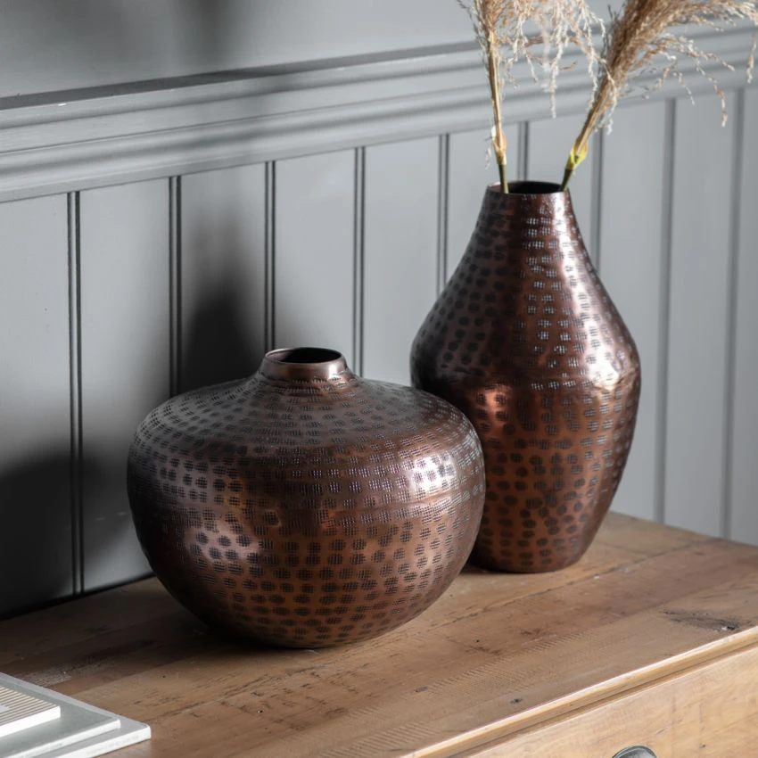 Leona Round Bronze Hammered Vase